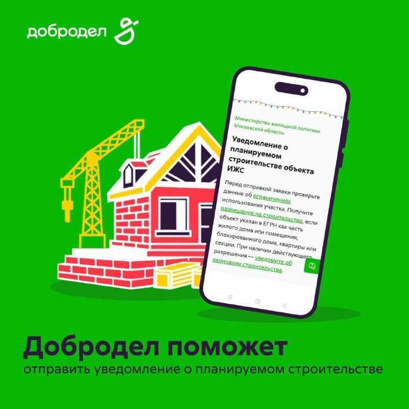 Сервис доступен в приложении в разделе «Услуги» — «Все услуги» — «Популярное» — «Уведомление о планируемом строительстве объекта ИЖС». Затем следует: - выбрать муниципалитет; - заполнить электронную форму и приложить документы. Ведомство рассмотрит заявление, а результат поступит в личный кабинет в течение пяти рабочих дней. 🏙Подмосковье - актуальные новости