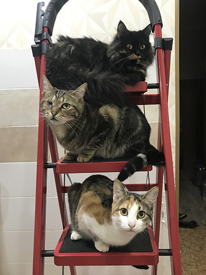 Решила купить себе стремянку. Такую, чтобы ого-го мощная, а не алюминий, чтобы ступеньки не вот эти, узкие, а такие, что стоишь двумя ногами и не шатаешься. Я искала ее, читая отзывы в и-нете, и заходя в хозмаркеты. И вот она дома... Упаковка отличная. Настолько отличная, что пушистые пару недель играли. Я согнула картонку в треугольник. Это чумовая когтеточка и домик одновременно оказались. Купила стремянку для ремонта. Котики - содрали тюль и штору в комнате, как-то надо повесить обратно. Но видимо НЕ СУДЬБА. Пока стремянка захвачена превосходящими силами пушистиков.... Ну ничего.... на днях я двоих отдаю - вот и поборемся! Пост автора Furrysofi. Читать комментарии на Пикабу.
