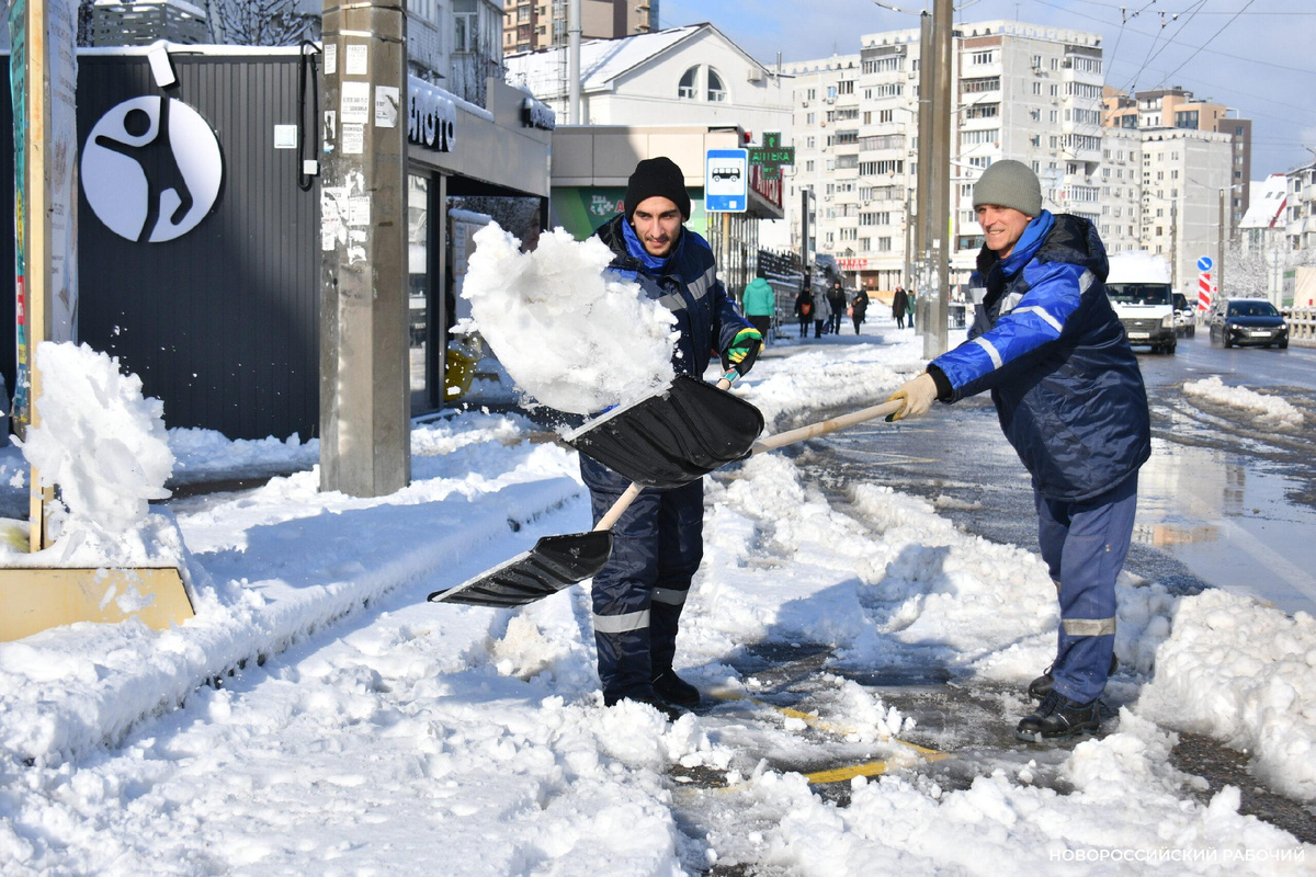 Корреспонденты «Новороссийского рабочего» выехали вместе с рабочими МБУ Евгением Трутневым и Аванесом Петросовым на задание. Наши адреса – остановки общественного транспорта. У чистильщиков снега работа спорится, как будто всю жизнь этим занимались. А ведь такой снегопад в нашем городе – впервые за много лет. По дороге Евгений Трутнев рассказывает, что приехал к нам из Казахстана 6 лет назад. И не припомнит подобной авральной ситуации. В МБУ «КСТ» он освоил много профессий: — Я и плиточник, и сварщик, и мойщик плитки, и газонокосильщик, и специалист по обслуживанию фонтанов, и бетонщик, и мастер по дереву, — поделился Евгений Михайлович. Вместе с напарником они быстро ликвидируют скользкие места на остановках. — Сколько в день вы перекидываете снега? — По объему к