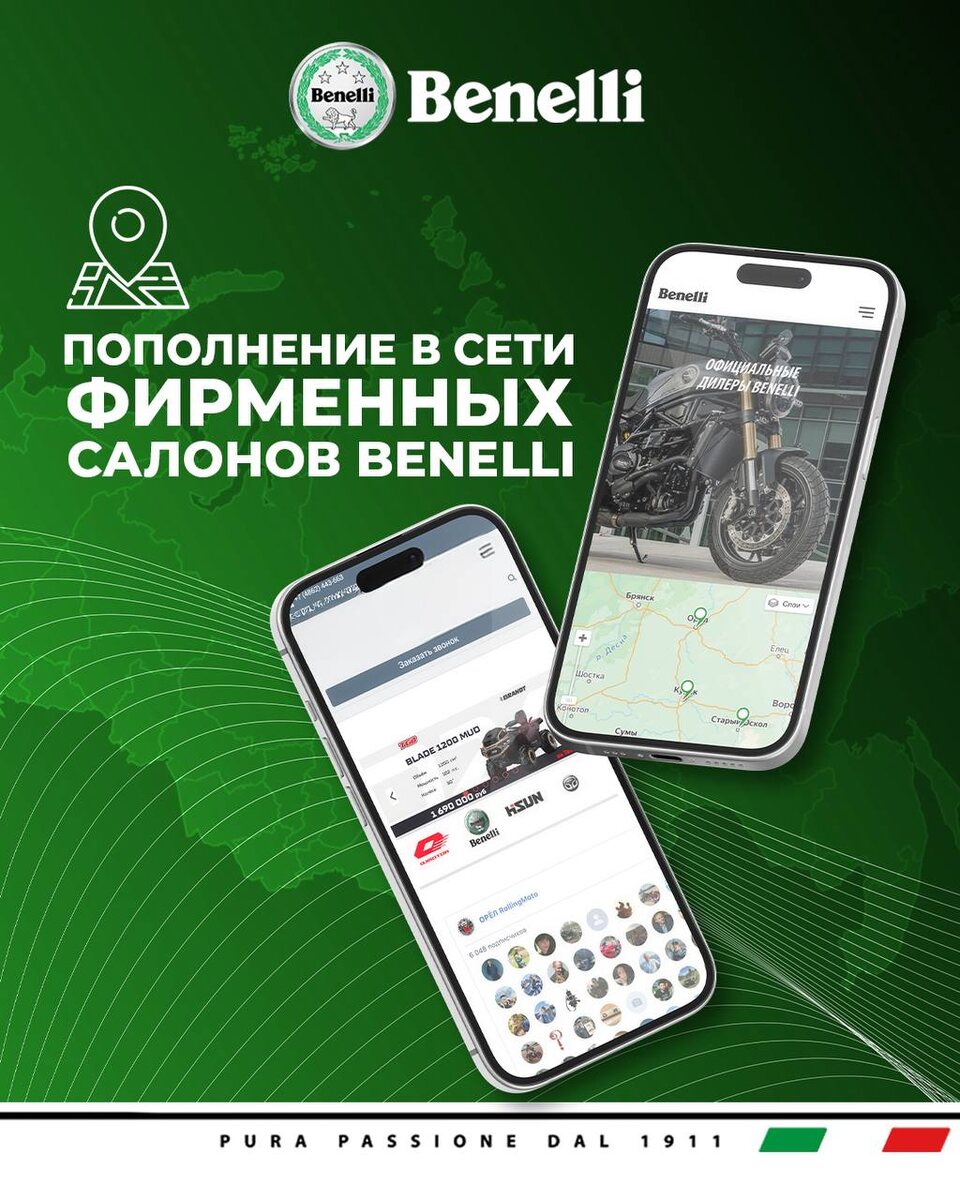 ! С радостью сообщаем об открытии новых официальных дилеров — Benelli Орёл/Benelli Курск! Теперь у вас есть возможность оценить итальянский стиль и мощь мотоциклов Benelli. В салонах вас ждёт знакомство с модельным рядом, экспертная консультация и возможность записаться на тест-драйв. 🗺 Адреса салонов: г. Орёл, ул. Ломоносова, 6-Б 📞 +7 (486) 222-26-30 🌎Сайт 💙Сообщество ВК г. Курск, ул. Пирогова, 1-Б 📞 +7 (471) 278-54-64 🌎Сайт 💙Сообщество ВК Приходите и откройте для себя мир BENELLI! 🏍️