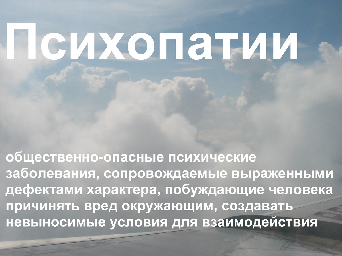 Психопатии – общественно-опасные психические заболевания, сопровождаемые выраженными дефектами характера, побуждающие человека причинять вред окружающим, создавать невыносимые условия для взаимодействия.