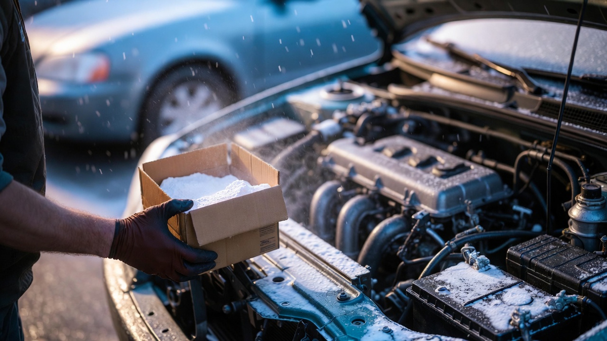 Когда я впервые увидел в бардачке у знакомого дальнобойщика пачку обычной пищевой соды, честно подумал, что мужик увлёкся домашней кулинарией между рейсами. Оказалось, что я просто многого не знаю о зимней автомобильной практике. Эта копеечная штука, которая стоит в каждом кухонном шкафчике, способна выручить в нескольких неприятных ситуациях на зимней дороге. Причём речь не о каких-то лайфхаках из интернета, а о вполне конкретных химических реакциях. Вот представьте картину. Утро, минус двадцать, вы опаздываете на работу. Поворачиваете ключ в замке зажигания, а в ответ — тишина. Или какое-то жалкое щёлканье стартера. Аккумулятор вроде не старый, заряжали недавно. Открываете капот, а там на клеммах красуется роскошная белая или зеленоватая шуба из окислов. Это сульфат свинца и продукты реакции с парами электролита. Штука неприятная, потому что эта корка работает как изолятор. Ток просто не проходит нормально, и аккумулятор, даже будучи полностью заряженным, не может отдать энергию стар