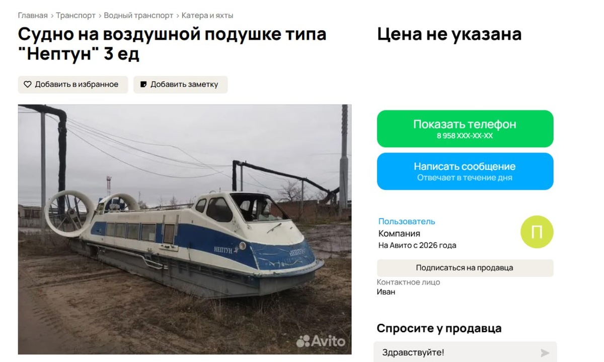 Региональное министерство транспорта прокомментировало нетривиальную, на первый взгляд, ситуацию: на популярной площадке Avito выставлены на продажу три судна на воздушной подушке «Нептун». https://oboz.info/mintrans-samarskoj-oblasti-obyasnil-zachem-prodayutsya-suda-na-vozdushnoj-podushke/