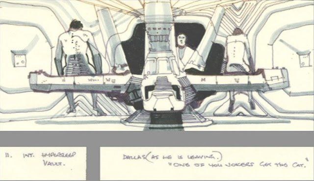 Ридли Скотт собирался показать членов команды в этой сцене обнажёнными. Но продюсеры окрестили эту идею порнографической и её пришлось переписать. Если бы такие сцены с абсолютно голыми актёрами были сняты, фильм бы запретили как минимум в пяти странах. В итоге, актёры оказались в белых шортах, а женщины в добавок получили наклейки, закрывающие соски. На самом деле, по сценарию в начале фильма была обнажёнка. Мы должны были сниматься полностью голыми в сцене пробуждения. Эта была очень провокационная идея: эти люди, проходящие через такую суровую внешнюю среду в их естественном виде. Но позже это изменили, – Сигурни Уивер Кстати, изначально процесс пробуждения из криокамер проходил немного дольше. Он начинался с крупного плана ноздрей Кейна, а затем уже открывалась криокамера. Кейн проходит в комнату управления, включает монитор, в котором видно всё, что происходит в криогенном отсеке. Он готовит кофе и в это время наблюдает за монитором, слушает звук открывающихся одна за другой кам