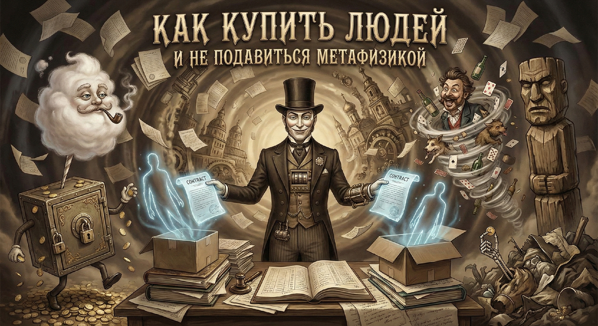 Чичиков продаёт не товар, а впечатление. Это уже высший пилотаж рынка. Он не берёт деньги из кассы, он переписывает саму кассу так, чтобы она выглядела солиднее.
