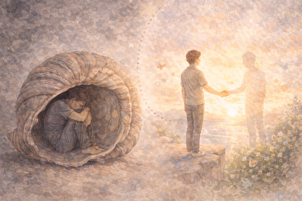 В терапии принятия и ответственности мы часто говорим о двух стратегиях: избегание и принятие. На поверхности всё ясно. Одно — мужественно, другое — трусливо. Одно — зрелость, другое — инфантилизм. Но так ли это? Или это лишь удобная оценка, которая заставляет нас стыдиться? Избегание — это не предательство. Это инстинкт. Первый и самый древний. Моллюск сжимается в раковине при тени. Зверь замирает, сливаясь с ландшафтом. Ребёнок зажмуривается, чтобы не видеть страшного. Это биология. Мы устроены так, чтобы отстраняться от того, что кажется угрозой целостности. Но человек однажды осознает свою раковину. И обнаруживает, что внутри неё темно, тесно и одиноко. Что, спасая себя от удара, он лишает себя света, звуков, прикосновений. Жизнь, лишённая угроз, оказывается жизнью, лишённой контакта. Принятие — это не героизм. Это не про «собраться и вытерпеть». Это про другое движение. Не сжатие, а раскрытие. Не замирание, а дыхание. Рискну провести странную аналогию: избегание — это вдох и заде