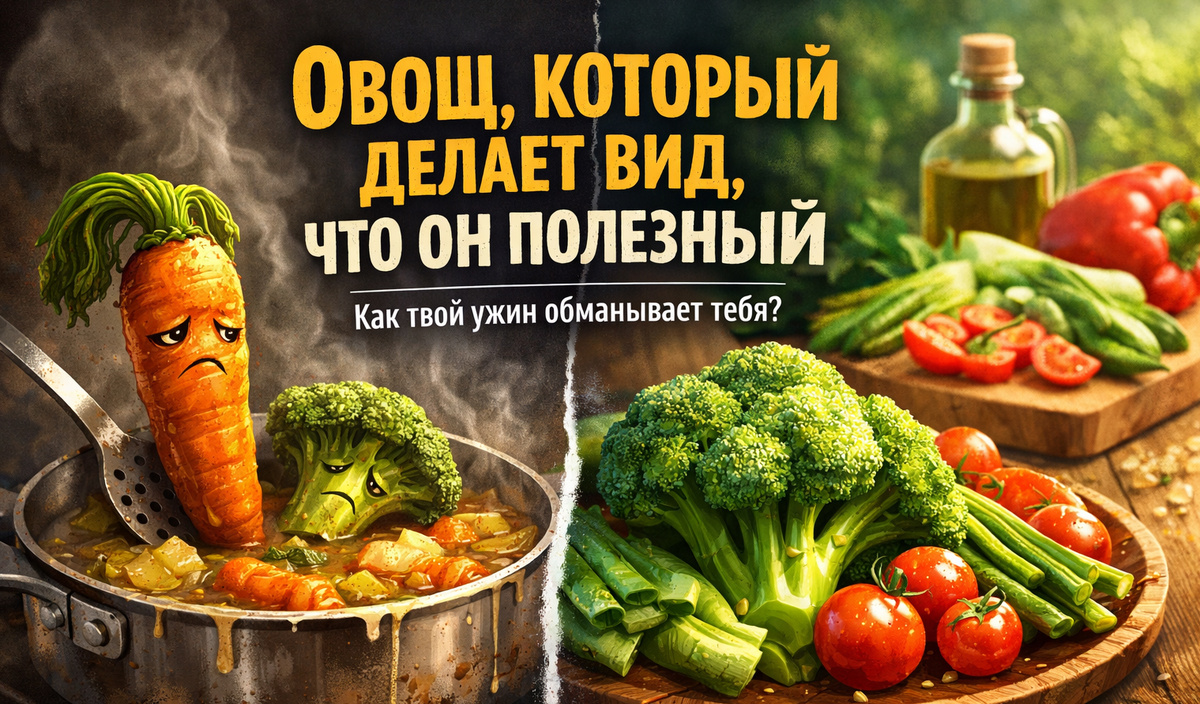 Самая большая проблема овощей не в их природе, а в том, что мы с ними делаем. Длительная варка, кипяток, отсутствие контроля времени и вкуса — это кулинарный способ убить в них всё, ради чего вообще стоило вытаскивать их из холодильника. Вот почему мягкие, разварившиеся до каши овощи самые бесполезные овощи в рационе. Они не вредные, они просто пустые.