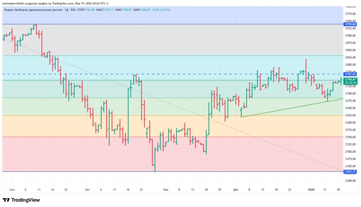 ❗️19 января российский фондовый рынок вырос, индекс МосБиржи укрепился на 0,6% до уровня 2750,25