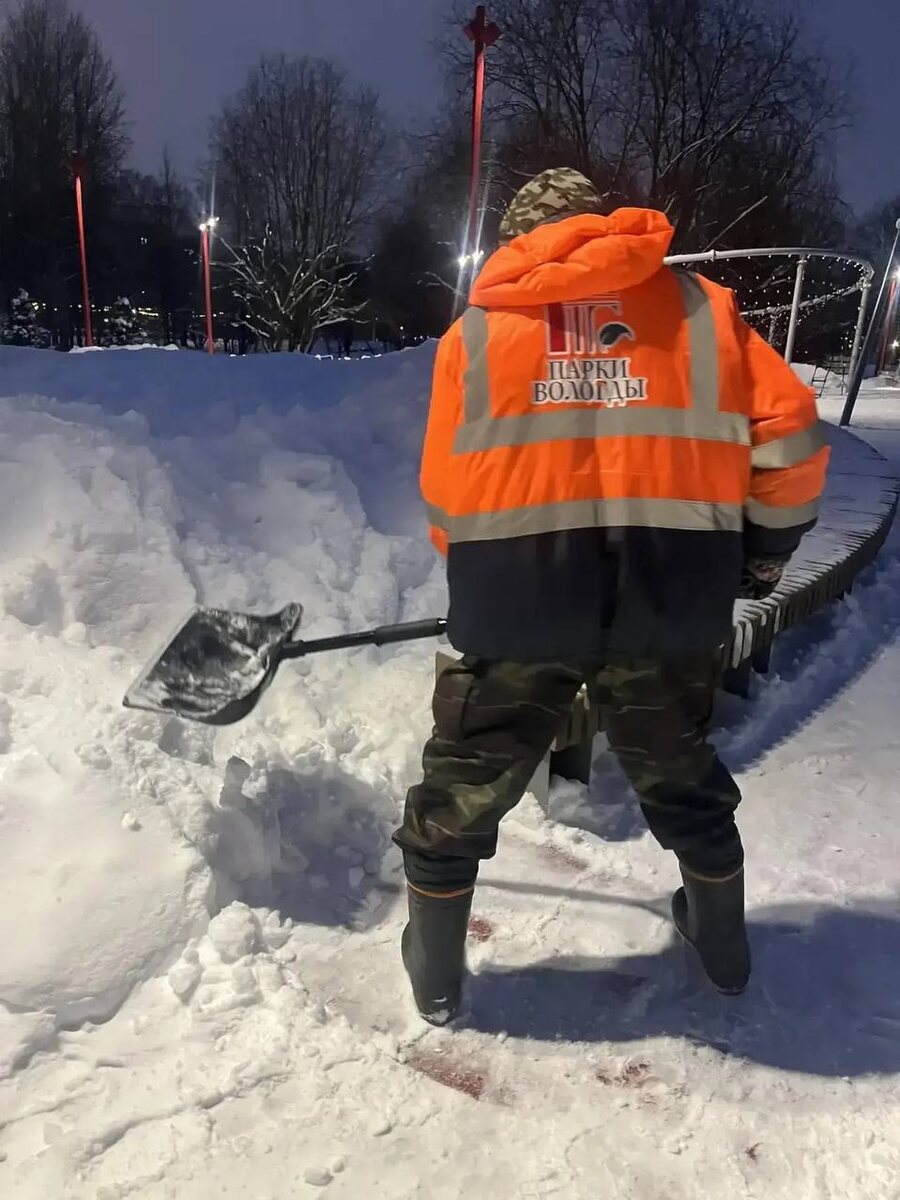 : 🔵 На уборке города задействовано 111 единиц специальной техники (с учётом подрядчика, предприятий, «Парков Вологды» и управляющих компаний) и 875 человек (включая порядка 700 дворников УК). Основной акцент — вывоз снежных куч из центра и с магистралей, подметание и обработка улиц, мостов, перекрёстков, а также очистка заездных карманов и прилотковых зон. Совместно с УК и ТОСами освобождаем дворы от запаркованности для полного завершения работ. 🔵Реагируем на обращения жителей: по просьбе из соцсетей в тот же день была расчищена улица Республиканская на отрезке от Панкратова до Преображенского. 🔵 За сутки с городских территорий вывезено 1 655 м³ снега (всего за сезон — 70 851 м³). Израсходовано 95 тонн противогололёдных материалов. 🔵 За сутки обработано 13 парков и площадей, 7 мостовых сооружений и 147 остановочных комплексов. 🔵 Выполнена уборка на 3 детских и спортивных площадках. 🔵 В ночную смену на уборку планируется задействовать 57 единиц техники для вывоза снега с клю