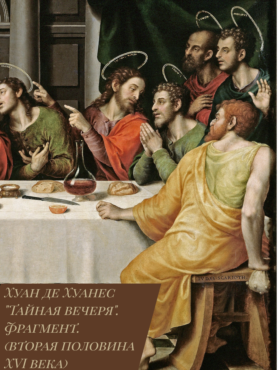 Интересно, что ни в одном из канонических текстов Нового Завета нет описания внешности Иуды. Поэтому в раннехристианском и раннесредневековом искусстве он всегда изображался без каких-либо особых примет. Однако позже появляется образ Иуды с рыжими волосами и бородой, и эта манера распространяется на всю Европу. В итоге на закате Средневековья и на заре Нового времени рыжие волосы становятся самым узнаваемым атрибутом Иуды, нередко наряду с уродливым лицом, крючковатым носом, отсутствующим нимбом (как, например, в моей подборке на картине Хуана де Хуанеса), желтыми одеждами (также символом лжи и измены) и кошельком с тридцатью сребрениками. И, если вы не всегда можете распознать апостолов на картинах, то Иуду вы никогда ни с кем не спутаете.
