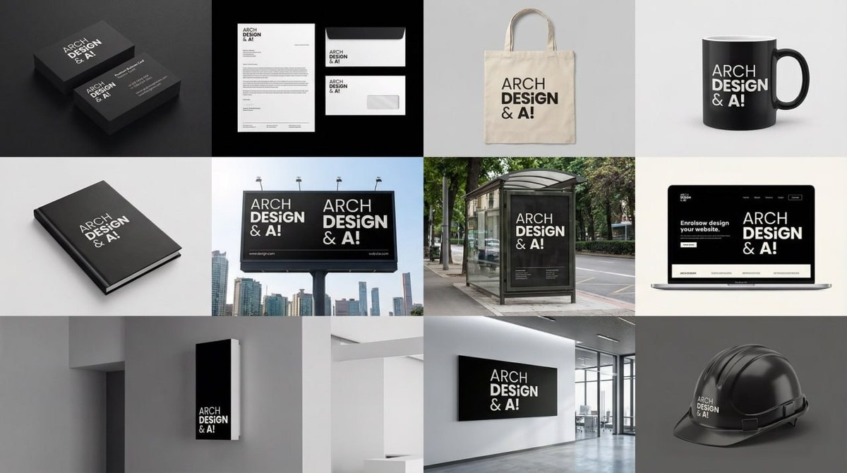Заходим в Nano Banana Pro, добавляем лого и этот промт: Create identity system one by one, use 10 high quality mockups with variety of relevant products, ads, billboards, bus stop, etc. generate one at a time, 16:9 На картинках вариант айдентики с лого моей AI-студии https://archdesignai.pro/ 💜 Можно сделать несколько вариантов, выбрать лучшие дизайны и отгенерить отдельно в качестве. Супер? Супер! TG: Арт, дизайн и нейросети @Art Design & AI / Лена Старкова #promt@art_design_ai