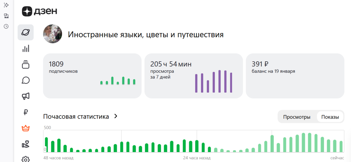 Всем привет! Сегодня деньги будем считать) Мои!) А если серьезно, то хочу немного приоткрыть для вас мир автора блога, познакомить со статистикой канала и высказать некоторые непопулярные мысли вслух. Возможно, кому-то будет интересно, как тут все устроено. Покажу скрин из своей студии автора. Данные за 4 дня, до этого я выводила деньги 15.01. Путем нехитрых вычислений получаем примерно 100 р в день при 200-250ч просмотра за 7 дней. Часы просмотра сейчас упали, обычно у меня больше- просели, пока я корейские домашки догоняла. Вчера только-только хотела вздохнуть спокойно, пришла ссылка на промежуточный тест. А там и текст про Чеджудо, и грамматика, и мини сочинение, и тестовые вопросы. Чуть мозг не лопнул, пока делала. Думаю, в этот раз вряд ли будет 100 баллов. Этот курс мне намного тяжелее дается, какая-то полная жесть началась. Вернемся к часам просмотра. О чем нам говорят эти цифры? Ну, во-первых, они говорят о том, что Дзен серьезным местом заработка в данный момент не являет