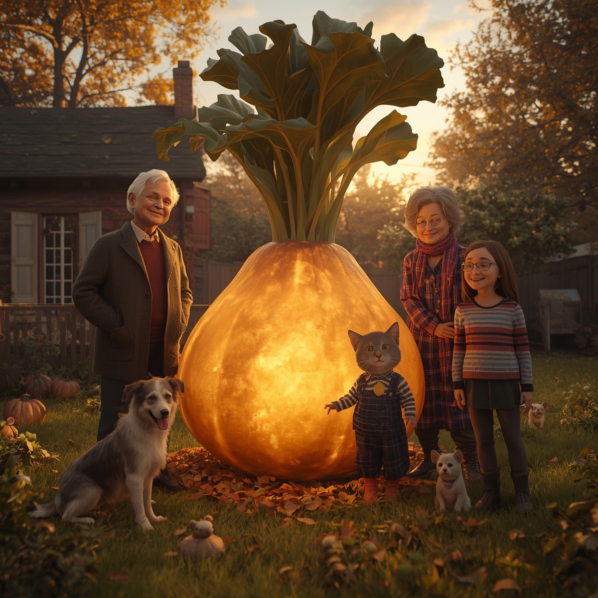 На опушке, где лес заканчивается ровно там, где начинается лень Деда, росла Репка. Не просто росла — она занимала собой всё жизненное пространство грядки, как теща на диване. Золотая, пузатая, и с таким чувством собственной значимости, будто она не овощ, а капитан дальнего плавания, пришвартованный в огороде.
