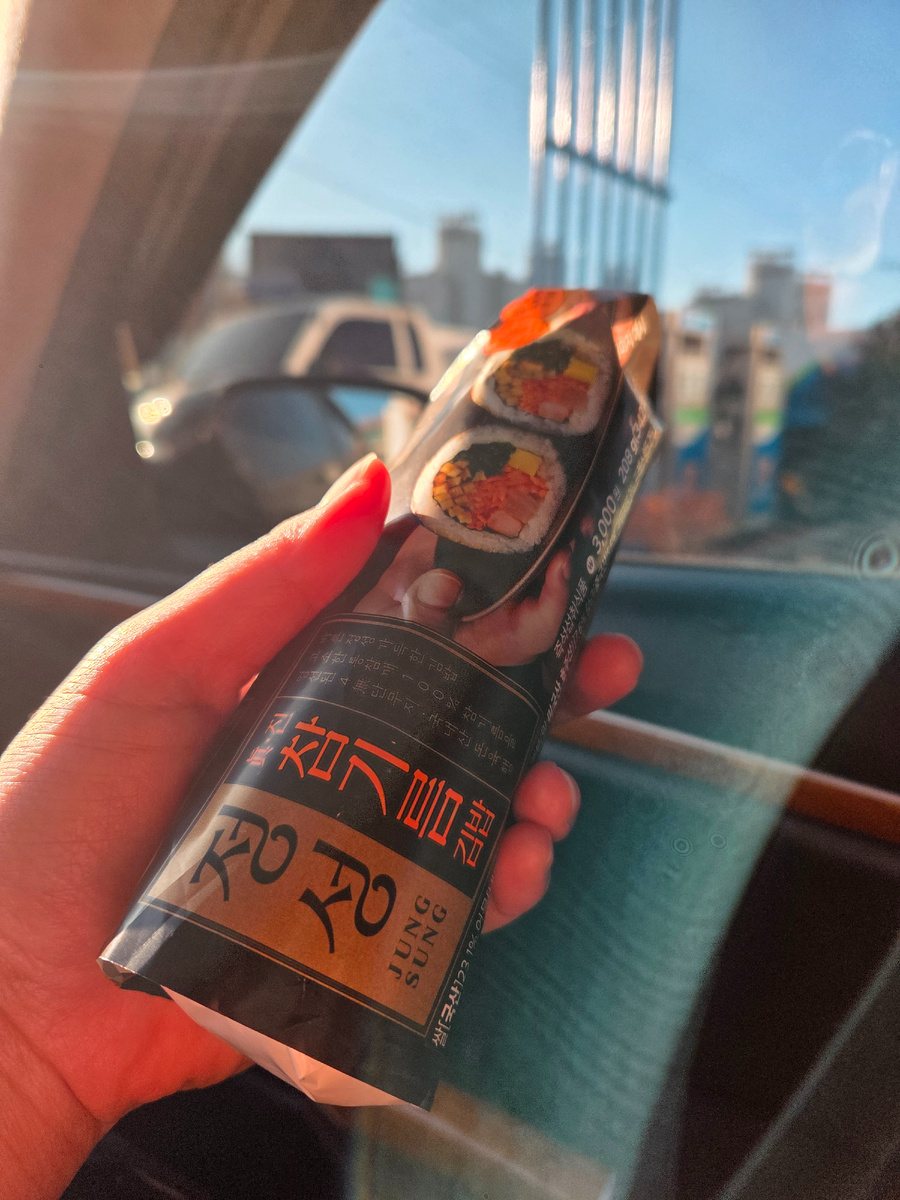 По пути мы заехали в ложку/вилку. Это парковка, где можно сходить в туалет, перекусить. Я выбрала рыбный пирог (омуг), он оказался очень вкусным. Сколько я пробовала, это один из самых вкусных. Он такой мясистый и консистенция тягучая. Еще запила горячим бульоном, ммм...вкусно. Муж взял сосиску, а-ля хотдог по-корейски, с острым соусом. Поели и поехали дальше. Кстати очень удобные парковки, рассположены по пути на платной дороге через каждые несколько километров.