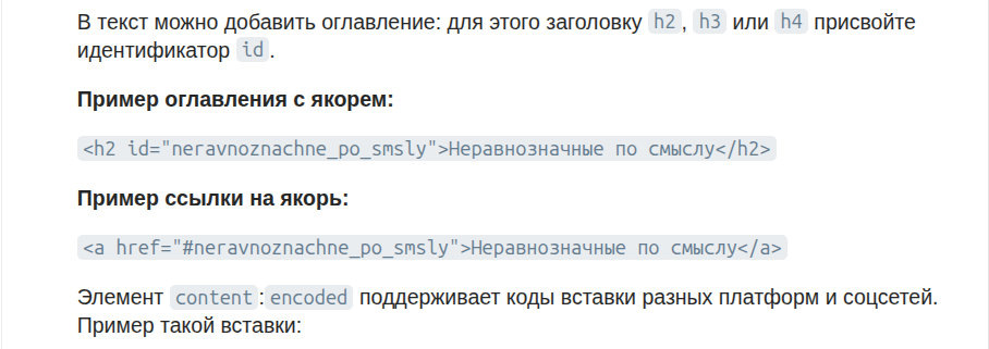 В справку Дзена внесены небольшие, но любопытные изменения. Обновился раздел, посвящённый формату RSS-ленты, с помощью которой можно передавать публикации с сайта в Дзен. Первое изменение связано с тем, что теперь с помощью тега «author» можно передавать имя одного или нескольких авторов. Где оно будет отображаться, не совсем понятно. Но, судя по всему, что-то придумали для СМИ — в справке сказано, что «тег доступен только для партнёров Новостей, подключивших бесшовное потребление». Второе изменение любопытнее — в Дзене расширена поддержка якорных ссылок. Сама поддержка таких ссылок появилась очень давно (я писал о них ещё в 2021 г.). Однако нормальная возможность их использования была ограничена. Да, можно указать ссылку на заголовок — и при переходе извне страница откроется в нужном месте. Но навигацию внутри страницы организовать не получится. Редактор не позволяет задать ссылку, начинающуюся с символа «#», — он добавляет к ней «http://», из-за чего ссылка становится нерабочей. Таки