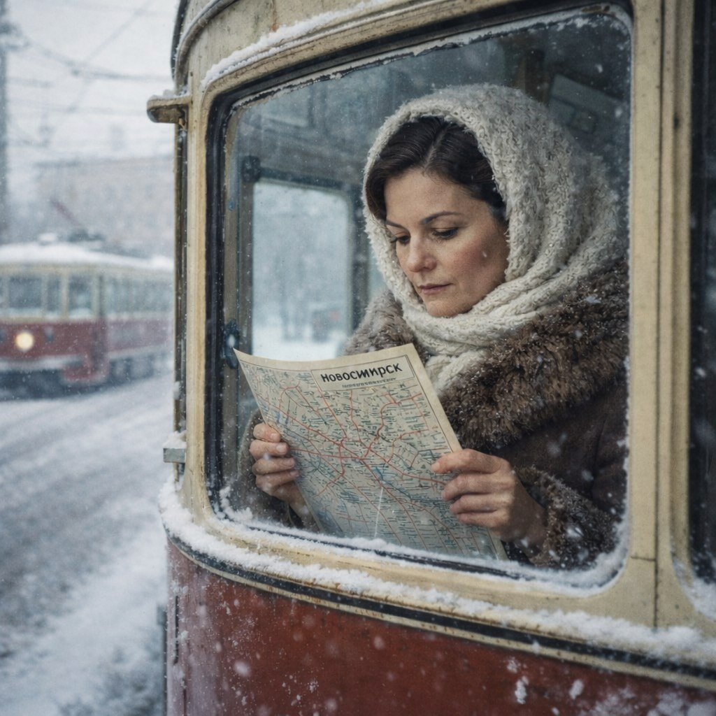Саша вышла из гостиницы, плотнее запахнув пальто. Утренний Новосибирск дышал морозной свежестью — воздух был прозрачным, с лёгкой горчинкой угольного дыма из печных труб. На улице уже кипела жизнь: торопились на работу люди в ватниках и ушанках, громыхали по булыжной мостовой грузовые машины, а вдалеке раздавался протяжный гудок паровоза.