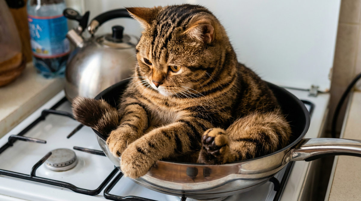 Вы дожарили мясо, сняли сковороду с огня — и сразу под кран. Холодная вода шипит, пар валит клубами, а вам кажется, что вы молодец: быстро, эффективно, чисто. Пока жир еще легко смывается. Но знаете что? Вы только что сократили жизнь своей посуды вдвое. А если повторяете этот трюк регулярно — готовьтесь к походу в магазин за новой сковородой уже через пару месяцев. Разберёмся, что творится с металлом на молекулярном уровне, когда вы устраиваете ему такой «холодный душ». Спойлер: ничего хорошего. Представьте раскалённый металл при 250°C. Все атомы внутри пляшут с бешеной энергией, расстояние между ними увеличено — вся конструкция расширена. Теперь вы льёте холодную воду. За секунду-две внешний слой остывает до комнатной температуры. Атомы резко сжимаются. А внутренний слой всё ещё горячий. Его атомы хотят оставаться расширенными. Получается конфликт: снаружи металл пытается ужаться, внутри — растянуться. Возникает внутреннее напряжение. Для алюминия эта разница давлений достигает 50–100