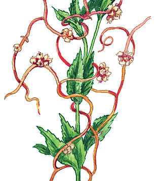 Повилика европейская (Cuscuta europaea) – гетеротрофное растение - паразит, причем облигатный, то есть по-другому ее существование невозможно. Повилика – это пример общей дегенерации в мире растений – в погоне за паразитическим образом жизни она лишилась хлорофилла, фотосинтеза, а листья редуцировались до крошечных и совершенно бесполезных чешуек. И всё таки это растения – у повиликовых неограниченный рост, мелкие цветки сгруппированы в соцветия, плод коробочка, выражены побеги - лианы и корни. Последние видоизменились в гаустории, то есть корни – присоски, которыми повилика проникает в ткани своих хозяев, чтобы высасывать всё необходимое для жизни – воду, минеральные и органические вещества. Стебли желтоватые или розоватые, очень тонкие, чрезвычайно гибкие, как нити, или сети, опутывающие с огромной скоростью побеги других растений. Повилика нападает как на травы, так и древесные формы. Как и у всех паразитов, здесь присутствует высокая плодовитость, чтобы гарантировать продолжение р