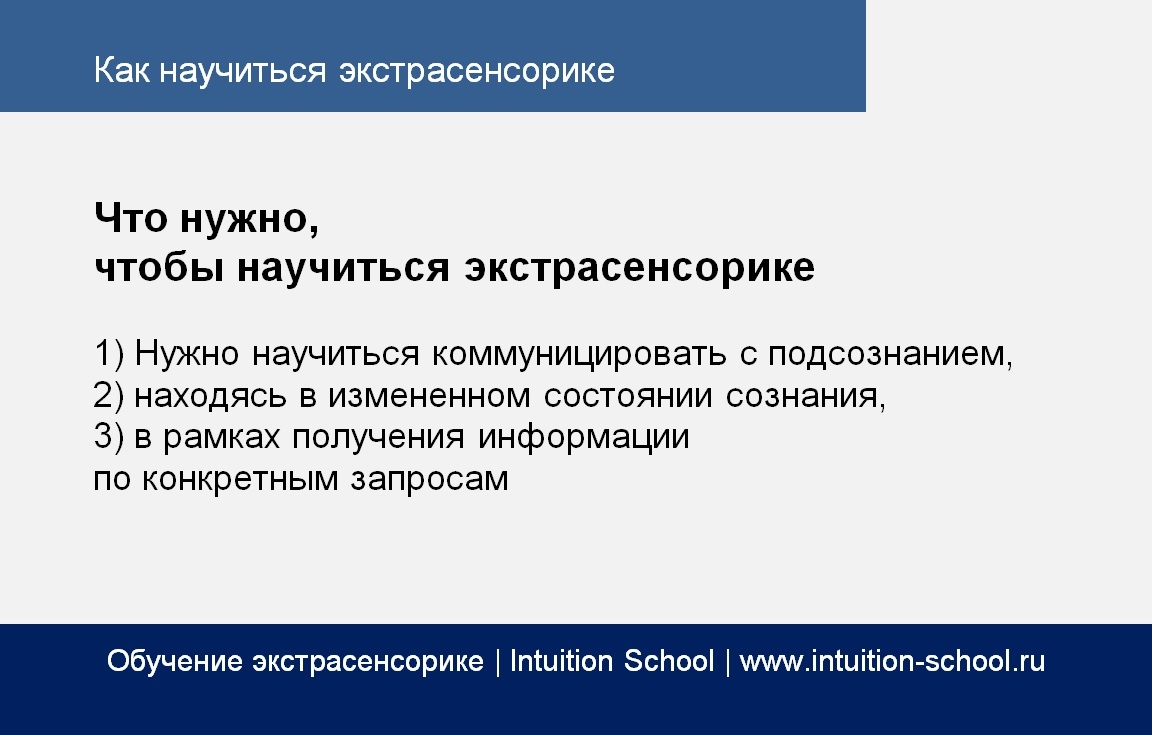 Поэтому, чтобы научиться экстрасенсорике, нужно наладить коммуникацию с подсознанием.