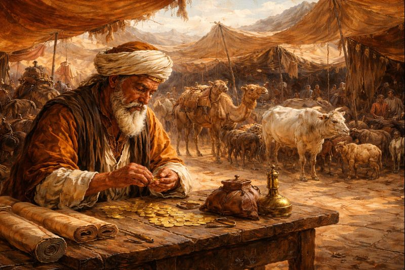 А теперь представьте купца в Древнем Вавилоне или крестьянина в средневековой Франции. Никаких бирж, никаких банков в современном понимании — с депозитами, процентными ставками и кредитными картами. Деньги существовали, причём уже тысячи лет: серебряные шекели в Месопотамии, золотые статеры в Греции, римские денарии, средневековые гроши и дукаты. Но для большинства людей монеты встречались редко. Крестьянин мог месяцами жить натуральным хозяйством, рассчитываясь с соседями зерном, трудом или курицами.