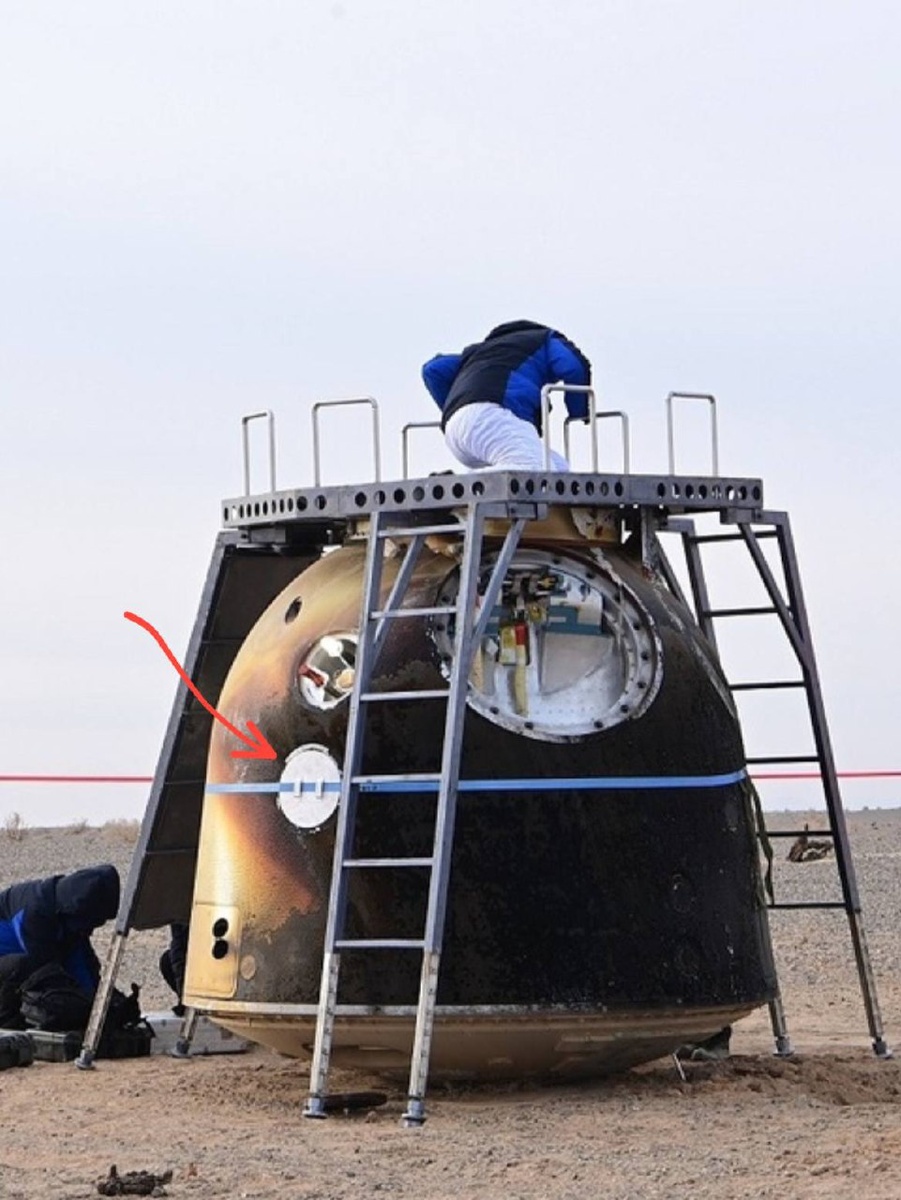 Видно, что на иллюминаторе какая-то "заглушка" и держится на обхваченной вокруг капсулы ленте. Кажется, что это специально разработали, зная, что могут проблемы с иллюминатором. По сути, это нужно для того, чтобы перевезти спускаемый аппарат в цех и там найти "виновника" столкновения.