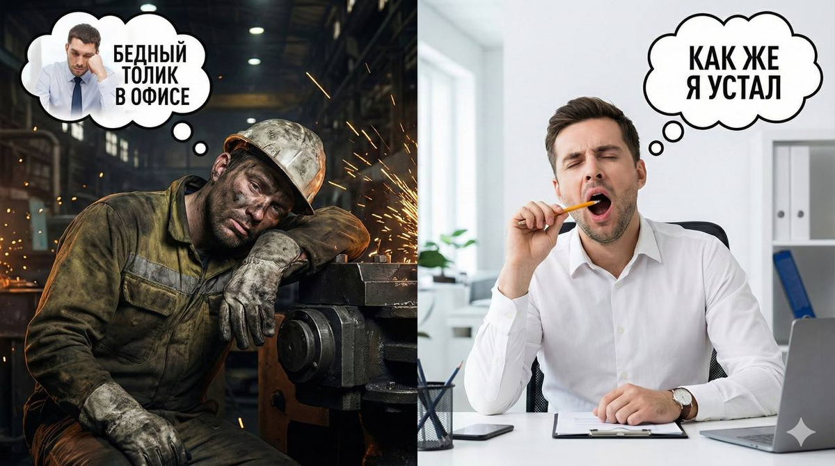 Мы привыкли обсуждать выгорание, токсичность начальства, отсутствие мотивации и стеклянные потолки. Мы жалуемся, что кофемашина сломалась, кондиционер дует в спину, а коллега слишком громко разговаривает по телефону. Нам, офисным жителям, кажется, что это — настоящие проблемы. Что наша усталость — самая тяжелая, а стресс — самый разрушительный. Под одной из моих статей о корпоративной культуре подписчик оставил комментарий, который сработал как ведро ледяной воды. Он написал: «Не все приходят в офис. Очень многие приходят в грохочущий цех, на стройку в мороз, на провонявшую рыбой рыбную базу… Офис — это круто». И знаете… возразить ему нечего. Давайте честно посмотрим на нашу офисную боль со стороны. Современный офис — это стерильная капсула безопасности. Здесь всегда +22 градуса. Здесь есть мягкое ортопедическое кресло и кулер с чистой водой. Самая большая физическая угроза здесь — порезаться бумагой или обжечь язык горячим латте. Когда менеджер говорит «я устал», он обычно имеет в ви