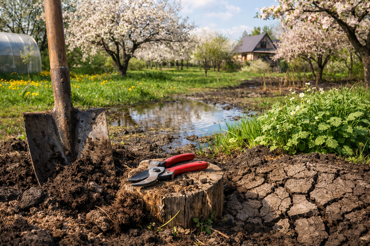 Отложите телефон. Ваша задача сейчас - не фотосессия, а разведка. Пройдитесь и посмотрите под ноги. Где дольше лежит снег или стоят лужи? Там будет влажно, возможно, потребуется дренаж. Где земля сухая и прогретая? Это ваше будущее солнечное место. Обязательно копните несколько ям в разных концах. Увидите под тонким верхним слоем глину, песок или суглинок - это и есть реальность вашей почвы, с которой придется работать.