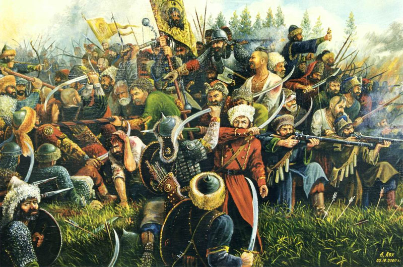 - Битва при Чувашевом мысу (1582): решающее сражение против войск хана Кучума. Несмотря на численное превосходство татар, русские одержали победу благодаря огнестрельному оружию и тактической дисциплине.
