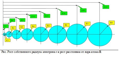 Причём радиуса 4р, 4d, 4f электронов и 5р, 5d электронов квантуются как 5 к 6. А радиуса 5р, 5d электронов и 6р, 6s электронов квантуются как 6 к 7.