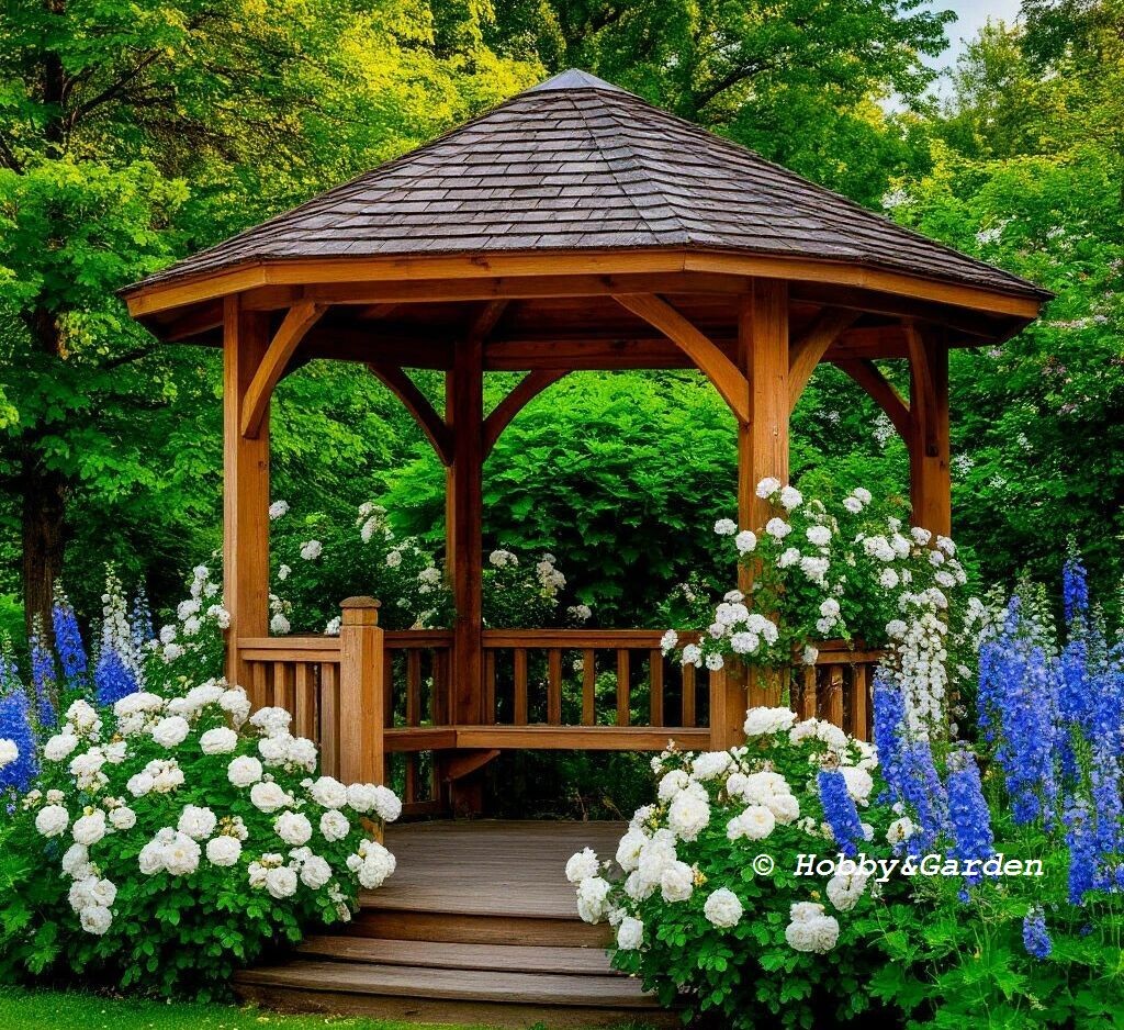 При создании бело-синего цветника важно помнить, что белый цвет в ландшафте - это не только палитра растений. Значительный вклад в общую эстетику вносят архитектурные элементы и малые формы, выполняющие утилитарные и декоративные функции. Они становятся постоянным «костяком» композиции, работающим в любую пору года.