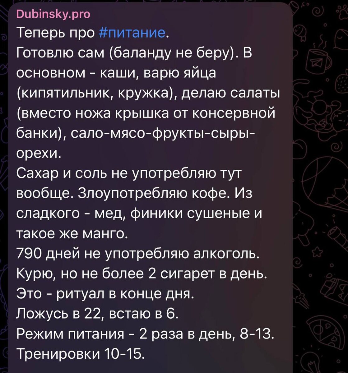 ? 😂 Итак, "кулинар" готовит себе баланду, но сразу уточняет, что это не баланду. Ага, конечно. Каши варит, яйца в кружке кипятит (экономия на посуде, я понимаю), крышкой от консервной банки режет салаты. Гениально! 🧐 Сахар и соль – это "зло", а вот кофе и сухофрукты – пожалуйста. Ну, хоть что-то полезное. ☕️ 790 дней без алкоголя – это, конечно, молодец. Но две сигареты в день – это уже какой-то странный ритуал. 🤔 В 22 ложится, в 6 встает. Нормально. А вот тренировки по 10-15 – это что за формат? Может, просто бегает вокруг казармы? 🏃♂️ В общем, ничего особенного. Обычный быт человека, который пытается выжить. Хотя, может, я чего-то не понимаю. 🤔 Посмотрим, что будет дальше. 🧐 #образжизни #питание #выживание #подкаст @obsudi_obsudi