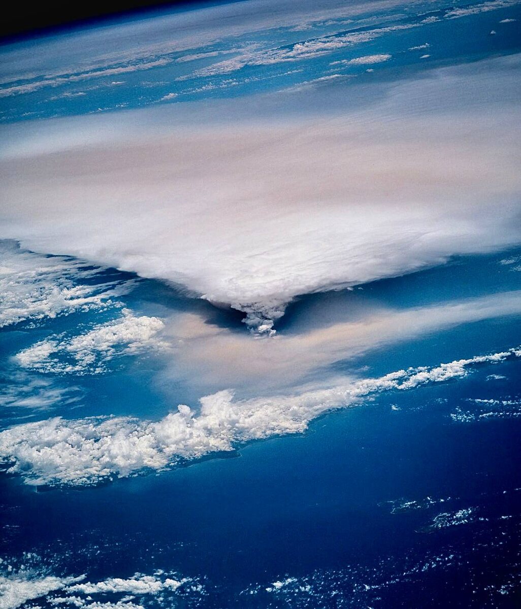Извержение вулкана Рабаул в Папуа — Новая Гвинея. Снимок сделан 20 сентября 1994 года с борта космического шаттла «Дискавери»