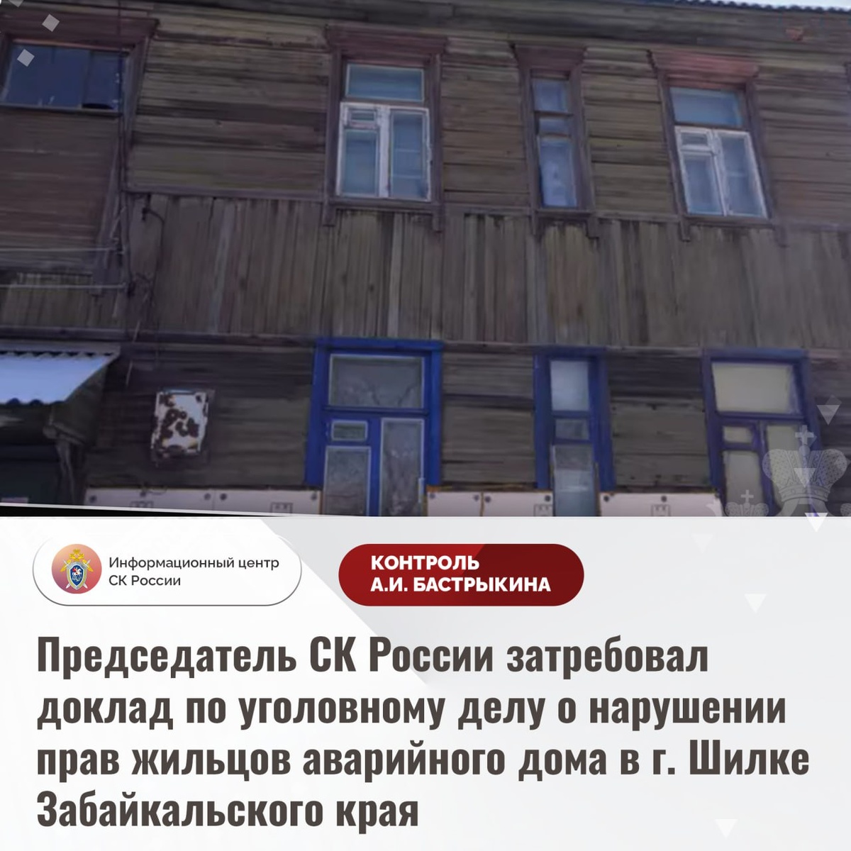 Председатель СК России затребовал доклад по уголовному делу о нарушении прав жильцов аварийного дома в г. Шилке Забайкальского края