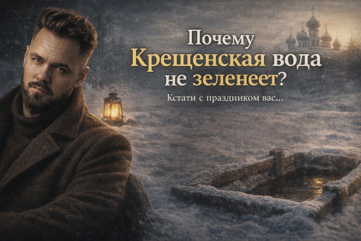 ? Кстати с праздником вас... Крещенская вода на улице (в проруби, колодце, открытом водоёме) действительно очень часто весь год не зеленеет и не тухнет, в то время как обычная вода из того же источника, набранная в банку в июне-июле, обычно покрывается зелёной плёнкой за 2-6 месяцев. Но причина почти всегда не в "святости" и не в "ионах серебра с креста", а в банальной физике и биологии. Почему именно крещенская обычно не цветёт? Основные реальные причины (в порядке убывания вероятности): 1. Очень холодная вода + зимний забор В январе вода из открытого источника обычно имеет температуру 0…+4 °C. При такой температуре почти все водоросли и большинство бактерий находятся в спячке или вообще не размножаются. Ты берёшь практически стерильную воду в плане роста микрофлоры. Потом дома она стоит в прохладном месте процесс "цветения" тормозится на годы. 2. Минимум органики и взвеси зимой Летом в воде куча мертвой растительности, фитопланктона, органических остатков это еда для водорослей