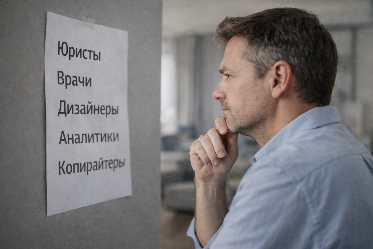 В публичных обсуждениях регулярно всплывают одни и те же списки — и они пугают. В них оказываются не только рутинные специальности, но и профессии, которые мы привыкли считать сложными и «человеческими»: юристы, врачи, дизайнеры, аналитики.