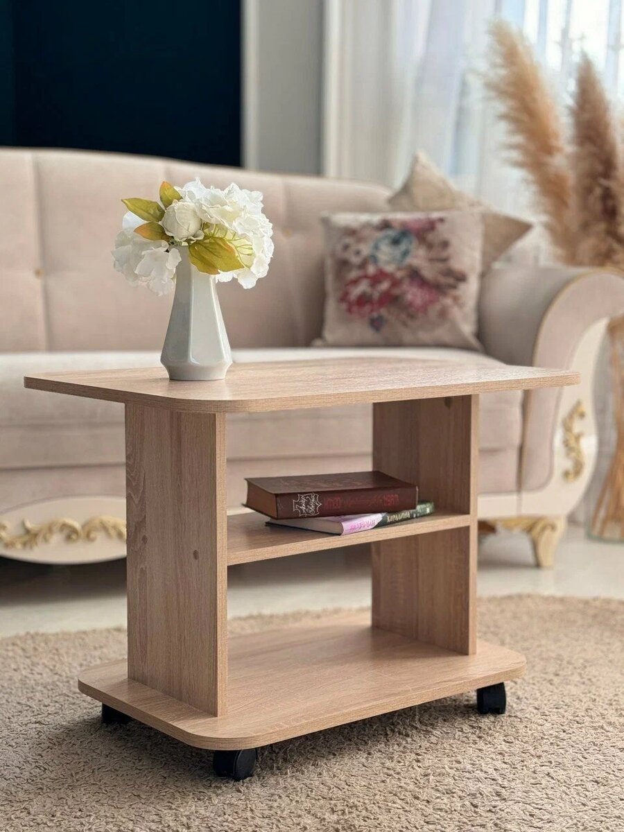 Пользуюсь журнальным столиком на колесиках уже месяц, поэтому могу поделиться полноценными впечатлениями. Изначально выбирал его из-за удобства и мобильности — иногда не хватает дополнительной поверхности, и хотелось что-то лёгкое и практичное. В итоге этот столик оказался даже удобнее, чем ожидал. Первое, что действительно радует — это колёсики. Столик очень легко перемещается по комнате, даже когда на нём стоят книги, чашка или ноутбук. Часто подкатываю его прямо к дивану, когда смотрю фильмы или работаю за ноутбуком. При этом колёса крутятся плавно, не скрипят и не царапают ламинат. По размеру столик оказался оптимальным. Он не занимает много места, но при этом на нём спокойно помещаются журналы, пульт, телефон, чашка кофе и даже тарелка с перекусом. Иногда использую его как дополнительный сервировочный столик, когда приходят гости — очень удобно, что можно подкатить его туда, где он сейчас нужен. Внешний вид тоже порадовал. Столик выглядит аккуратно и современно, хорошо вписался в