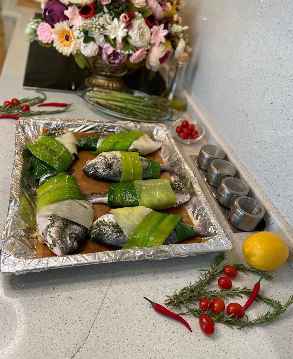 ✔ Готовится без лишних движений — идеально даже для буднего дня 1️⃣ Рыбу очистите, выпотрошите, хорошо промойте внутри и снаружи, затем обсушите бумажным полотенцем. 2️⃣ Смешайте оливковое масло, соль, чёрный перец и прованские травы. Натрите этой смесью дорадо со всех сторон и внутри. 3️⃣ С лука-порея снимите несколько верхних листьев и обдайте их горячей водой — так они станут мягкими и гибкими. 4️⃣ Светлую часть порея нарежьте тонкими кольцами, смешайте с оливками и нафаршируйте этой начинкой рыбу. 5️⃣ Выложите све