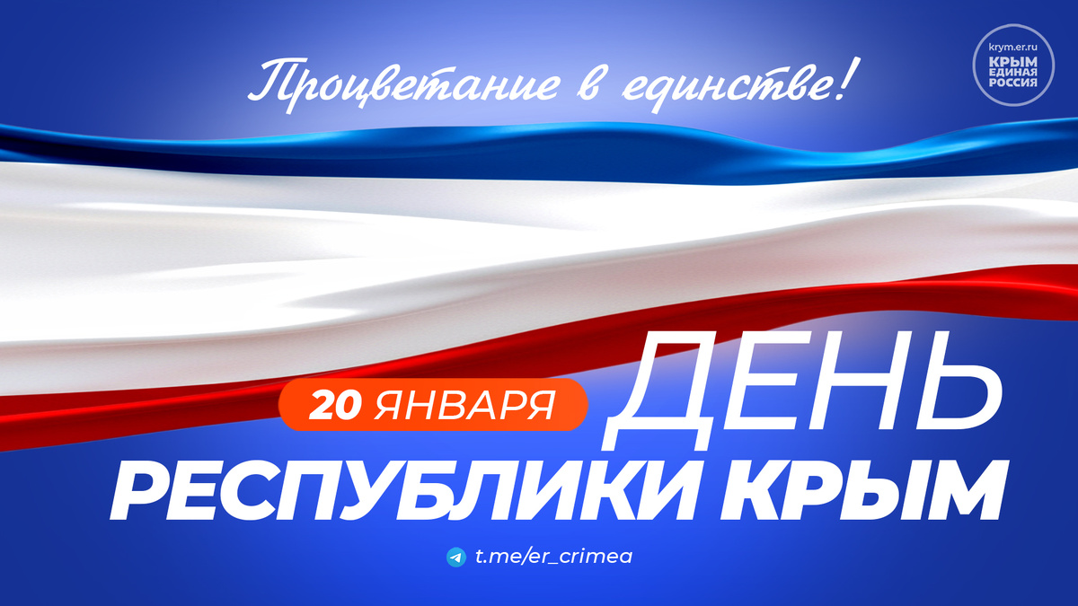 Этот праздник символизирует единство и межнациональное согласие жителей нашей республики, которые гордятся многовековой историей, духовным и культурным наследием родного края. Он объединяет всех нас чувством гордости и ответственности за свою Родину, стремлением общими усилиями строить и созидать будущее. Дорогие земляки! В этот праздничный день от всей души желаем вам крепкого здоровья и благополучия, реализации намеченных планов и успехов в добрых делах во имя процветания и дальнейшего уверенного развития нашего родного Крыма! #ЕдинаяРоссия #ЕР82 #РеспубликаКрым Новости Партии в Телеграм: t.me/er_crimea