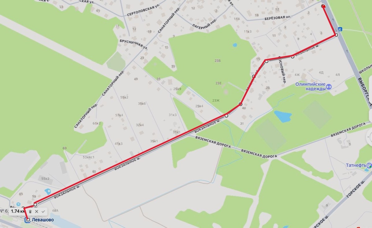 Посмотрел Яндекс карты. Вроде от Выборгского шоссе до станции Левашово вполне понятная проходимая дорога. Около 2 км. Запас времени у меня был, и я решил, чем стоять ждать транспорт на пересадке, лучше проеду на одной маршрутке, прямо от дома, и пройдусь пешочком. Два километра по дороге - не обременительно.