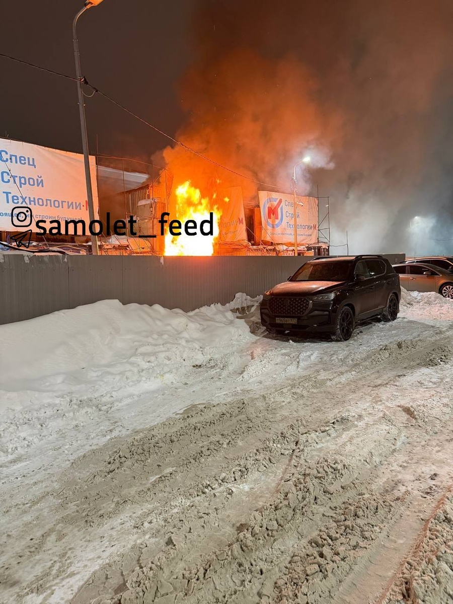 На стройплощадке а/д "ЮЛА" в районе платной парковки В48 пожар. Горит бытовка.