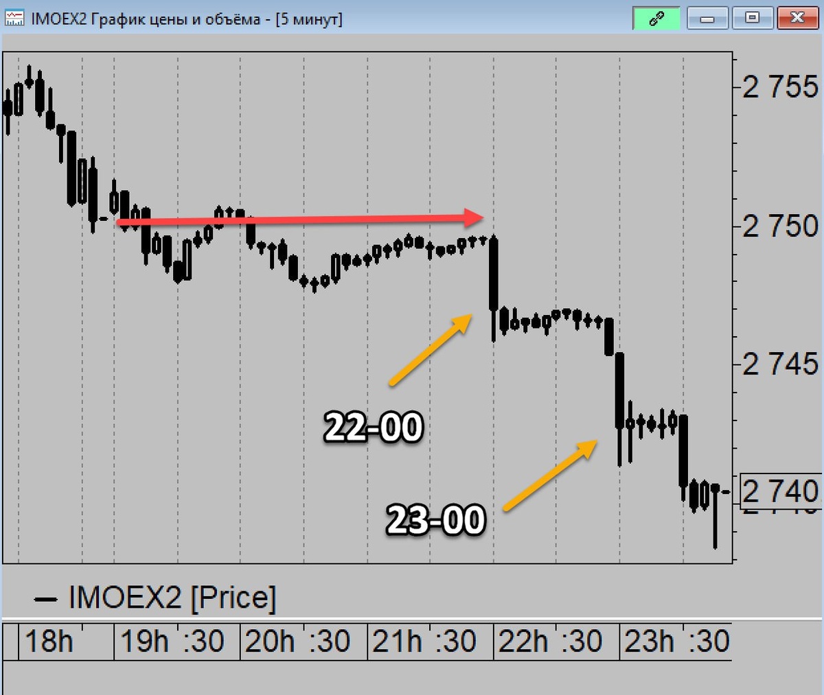 Когда сделки совершаются нормально чаще всего на рынке это распределено статистически равномерно или выпадает на какие то экстремумы время выхода событий, статистики и т.д. Но когда происходит манипуляция очень часто повышенные объёмы происходят на концах периодов. Для того чтобы "правильно" как нужно манипулятору закрыть час, день, неделю и т.д.... У нас вечерка сегодня спокойненько шла в бок... Но в 22 началось... удары 22-00, 23-00, 23-30. Пару часовых свечей и закрытие дня "испортили". Все удары на закрытиях часа, один на закрытие получасовика. В некоторых индексных бумажках объёмы прошли больше чем на дневной. Без всякого повода... Наш конченный регулятор, где уже давно нужно всех пересажать на мой взгляд, своим сайтом где можно "анонимно сообщить о манипуляциях" может подтереться :)