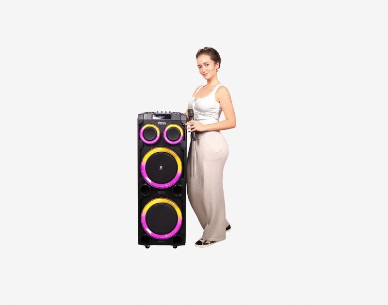 Теперь о главном: эта колонка — не для тех, кто ищет идеальный звук. Если вы меломан, который ценит каждую ноту и тончайшие нюансы, то, думаю, она вас не впечатлит. Но если вам нужно громко, ярко и с размахом — вот тут она в своей стихии. Особенно приятно, что в комплекте идет не только пульт управления, но и микрофон. Получается, по сути, готовая караоке‑система.