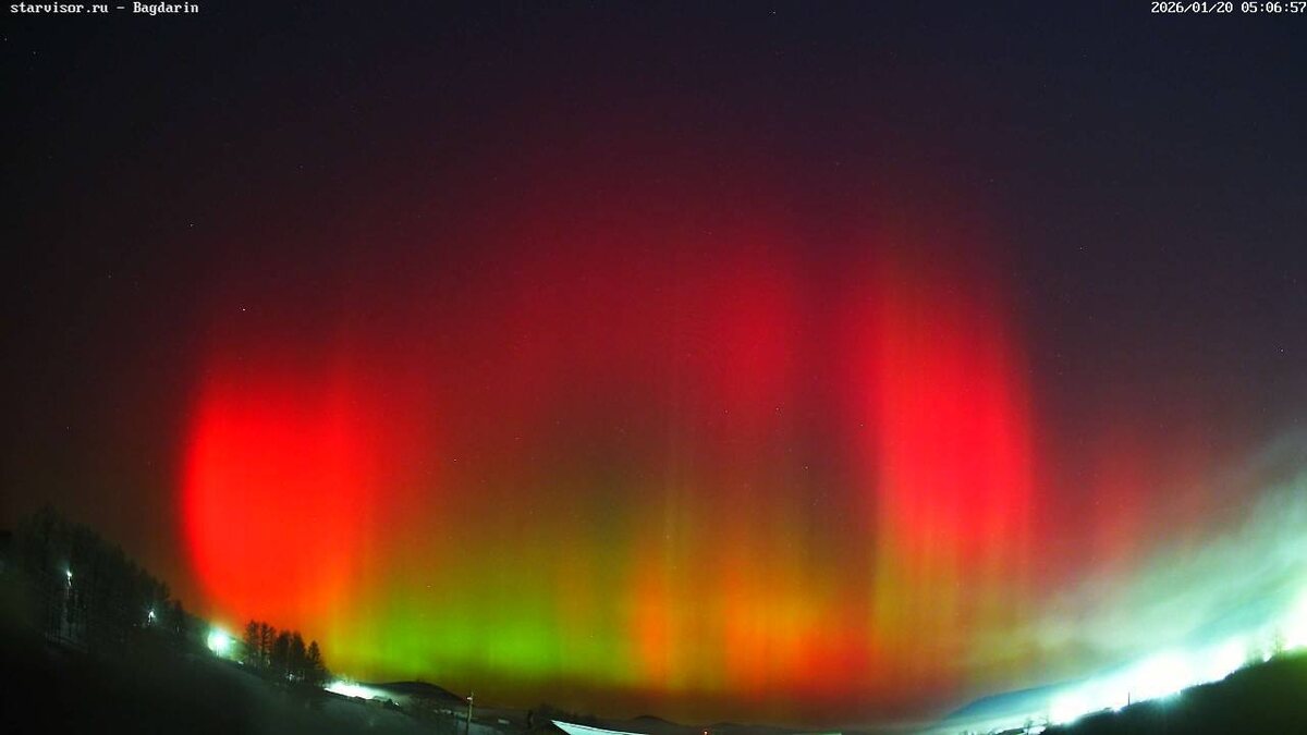 Взрывная фаза сияния прямо сейчас, камера в городе Багдарин на 54 широте проекта старвизор.