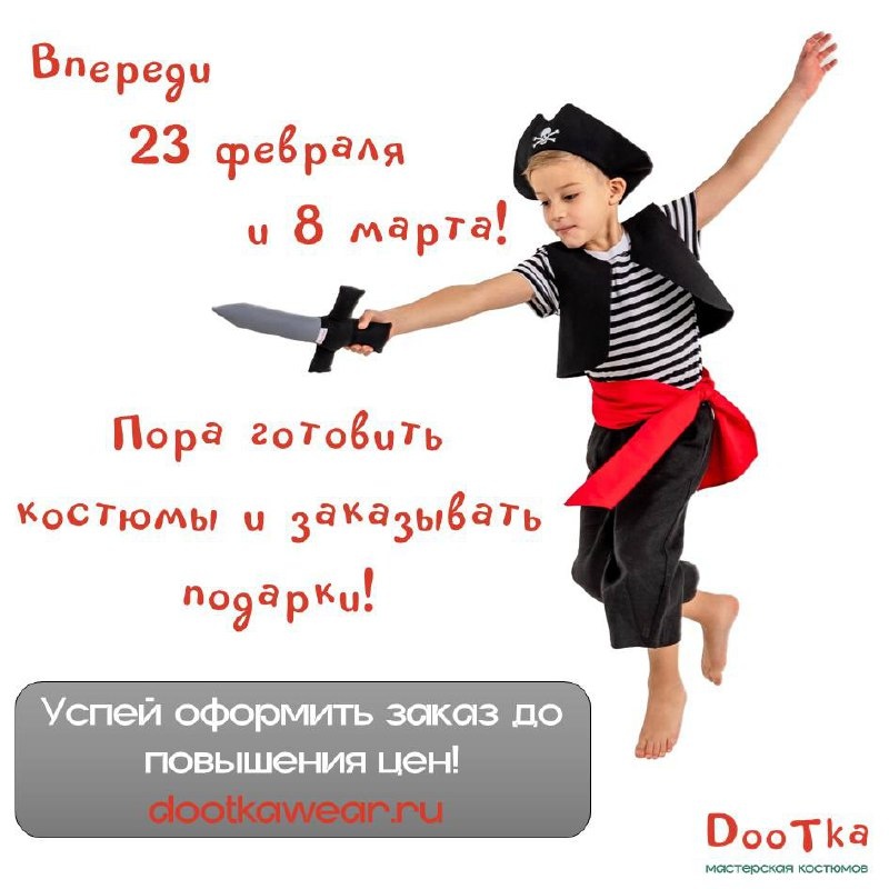 ! 🏃♀️ Друзья, важная новость! Следующая неделя начнется с обновления цен на наши детские костюмы. ✨ Но у вас есть суперсила — успеть купить сказку выгодно! ✨ До воскресения, 23:59, действуют старые цены. Выбирайте костюм принцессы, супергероя, дракона, летчика или пирата и оформляйте заказ, пока цены не изменились. Это идеальный момент сделать запас на ближайшие праздники! Не откладывайте волшебство — ловите момент!✨ Каталог костюмов доступен по ссылке
