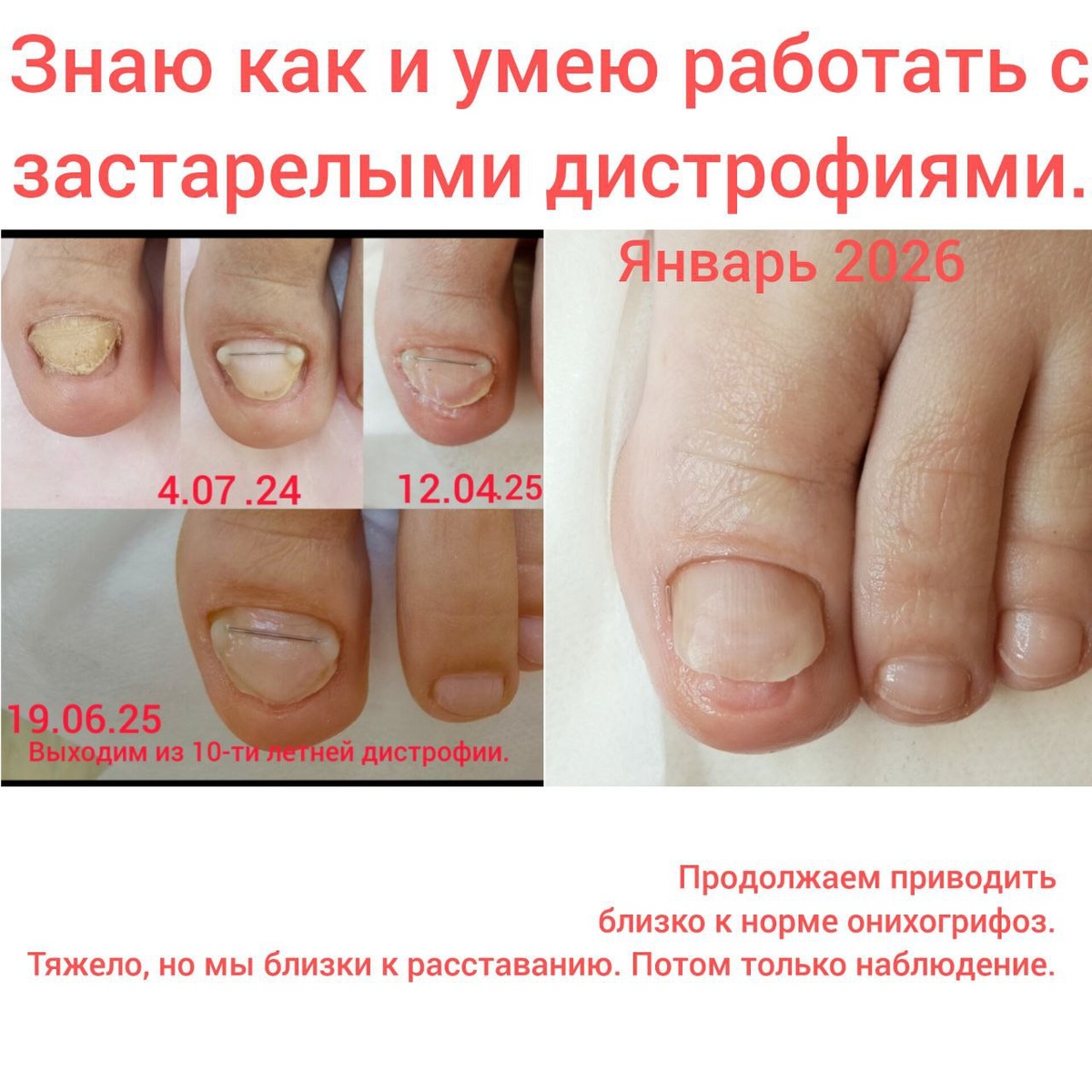 Работа с тяжёлыми случаями врастания и дистрофиями, тотальные поражения ногтей грибком, бородавки под ногтями, дети от 1,5 лет с грибком