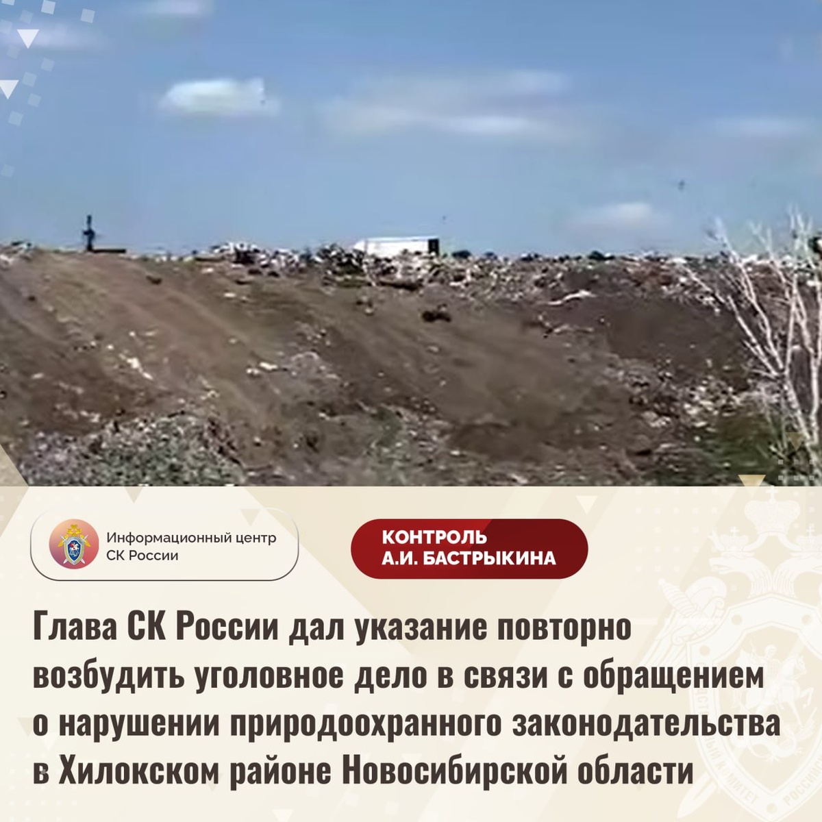 Глава СК России дал указание повторно возбудить уголовное дело в связи с обращением о нарушении природоохранного законодательства в Хилокском районе Новосибирской области В приёмную Председателя СК России А.И. Бастрыкина в социальной сети «ВКонтакте» обратился житель Новосибирской области по вопросу продолжающегося нарушения природоохранного законодательства в Хилокском районе. Длительное время вблизи жилых домов функционируют крупные полигоны ТБО, эксплуатируемые с многочисленными нарушениями. В результате местные жители задыхаются от едких испарений. Несмотря на то, что ранее планировалось закрытие объектов, в конце прошлого года срок функционирования одного из них продлен. Многочисленные обращения граждан в различные инстанции результатов не принесли. Указанная ситуация освещалась в социальных сетях. Ранее А.И. Бастрыкин ставил ее на контроль в центральном аппарате ведомства. В СУ СК России по Новосибирской области по данному факту трижды возбуждались уголовные дела, которые отмене