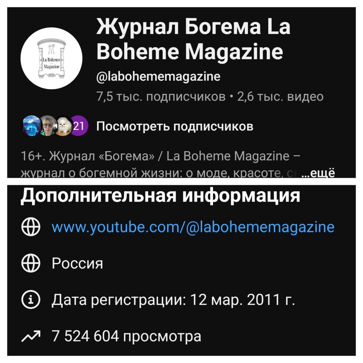 подписчиков на нашу видеоколлекцию. Регулярные премьеры! Спасибо всем Вам! Богема любит Вас! https://youtube.com/@labohememagazine