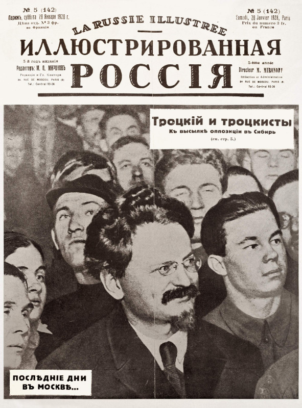 Обложка парижской белоэмигрантской «Иллюстрированной России». Январь 1928. «Троцкий и троцкисты. К высылке оппозиции в Сибирь. Последние дни в Москве...»