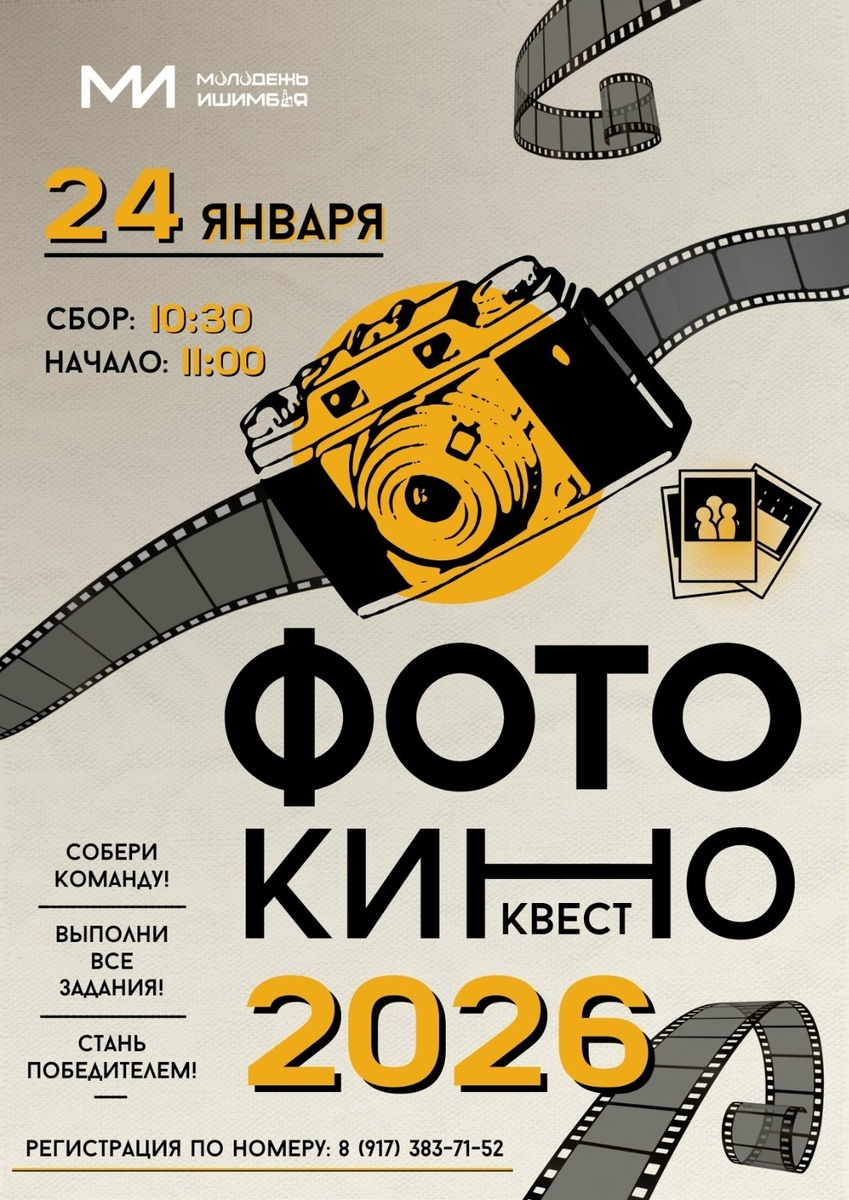 Приближается День российского студенчества, в преддверии которого в Ишимбае состоится «ФотоКиноКвест – 2026». Мероприятие, в котором традиционно участвуют школьники и студенты, уже который год проводит комитет по молодёжной политике муниципального района. Квест пройдёт в ближайшую субботу, 24 января. Сбор команд – в 10.30. Начало – в 11 часов. Для участия необходимо сформировать свою команду и подать заявку. Узнать всем подробности и зарегистрироваться можно по телефону 8-917-383-71-52. 12+