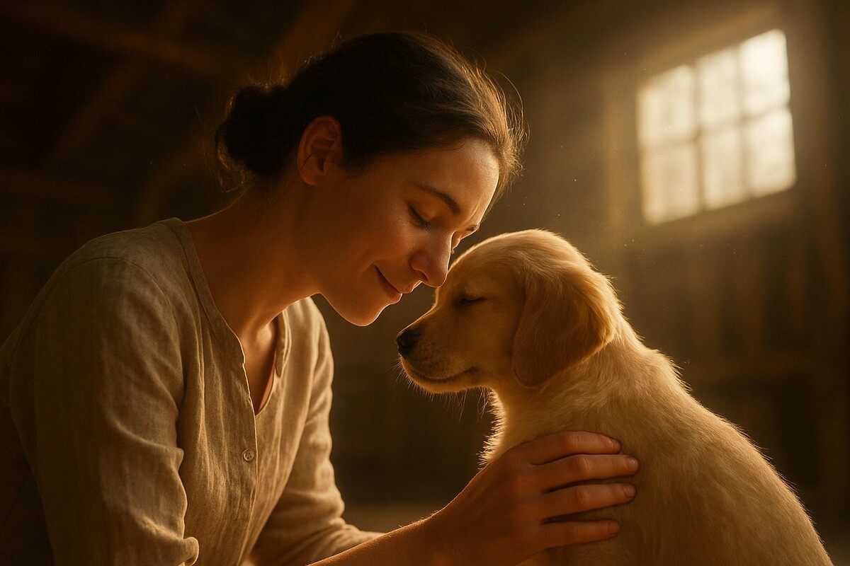 «Нет-нет-нет», – прошептала она, вцепившись в край стола, но не встала. В коридоре уже раздавались тяжёлые шаги. Из гостиной выскочила Дейзи – крохотный золотистый комочек с прижатыми ушами и испуганными, полными слёз глазами. Она метнулась к ногам Анны, пытаясь забиться под стул.